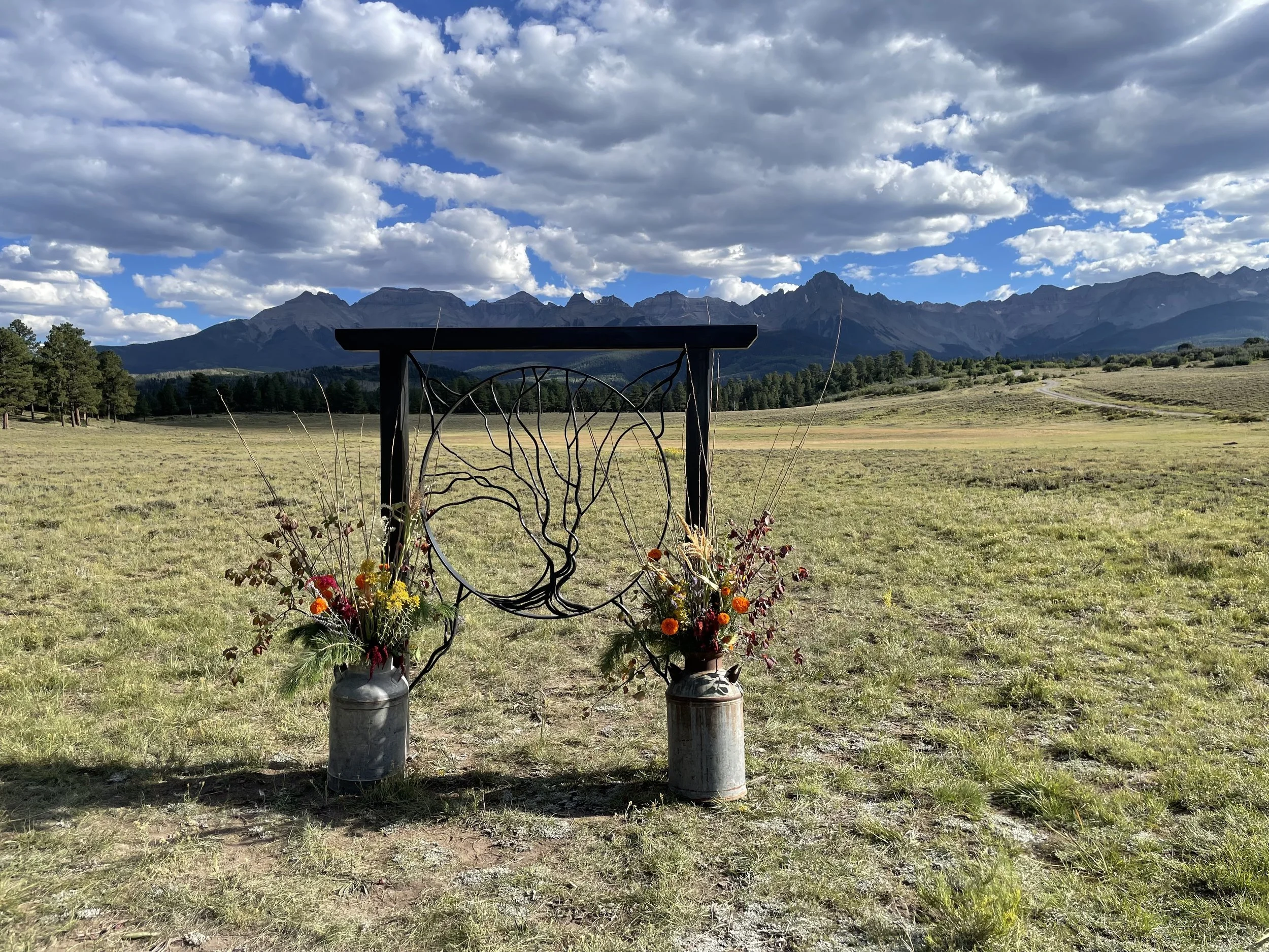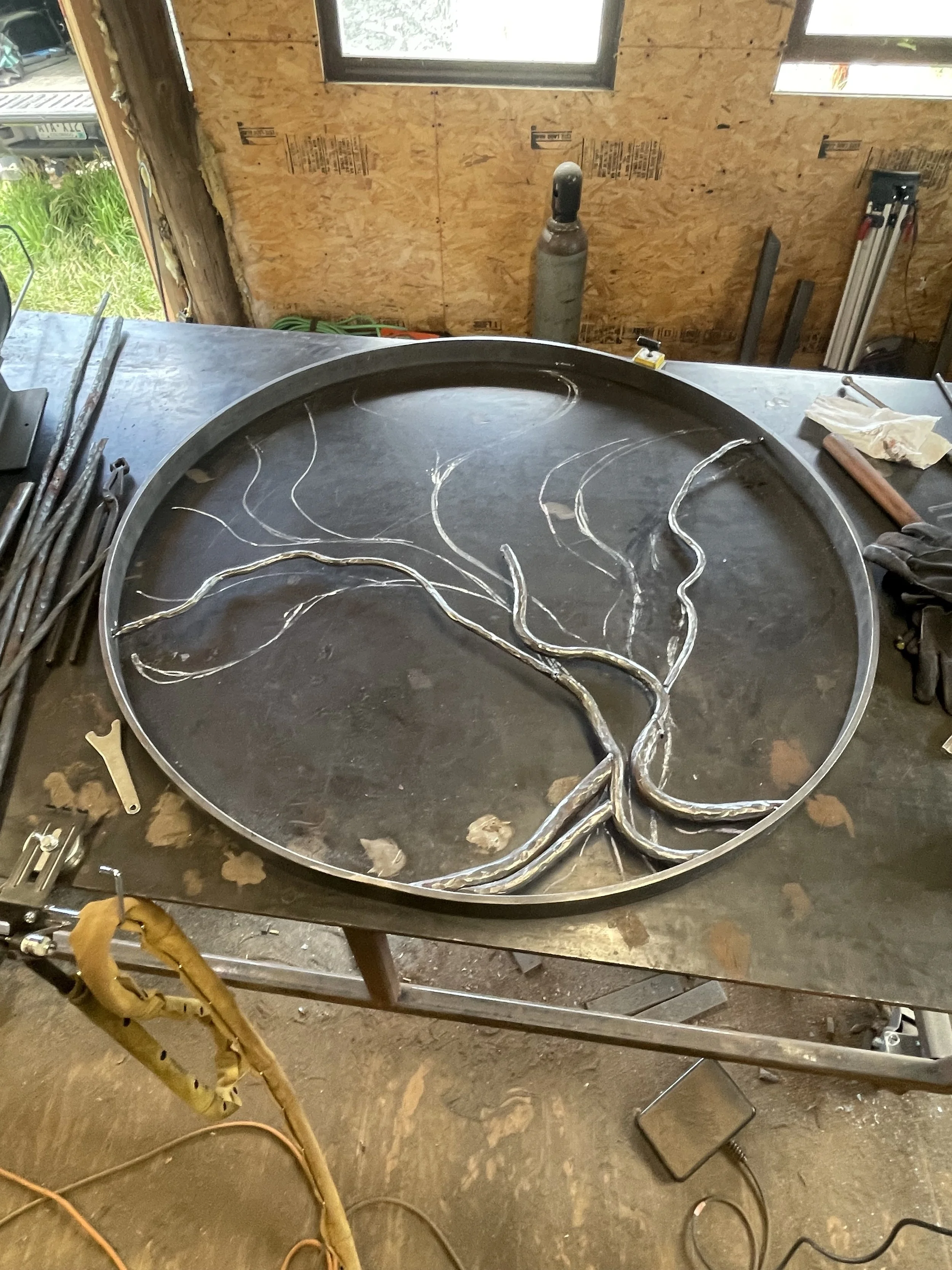 Alter arch for me and my wife’s wedding. Forged and textured steel, welded frame.